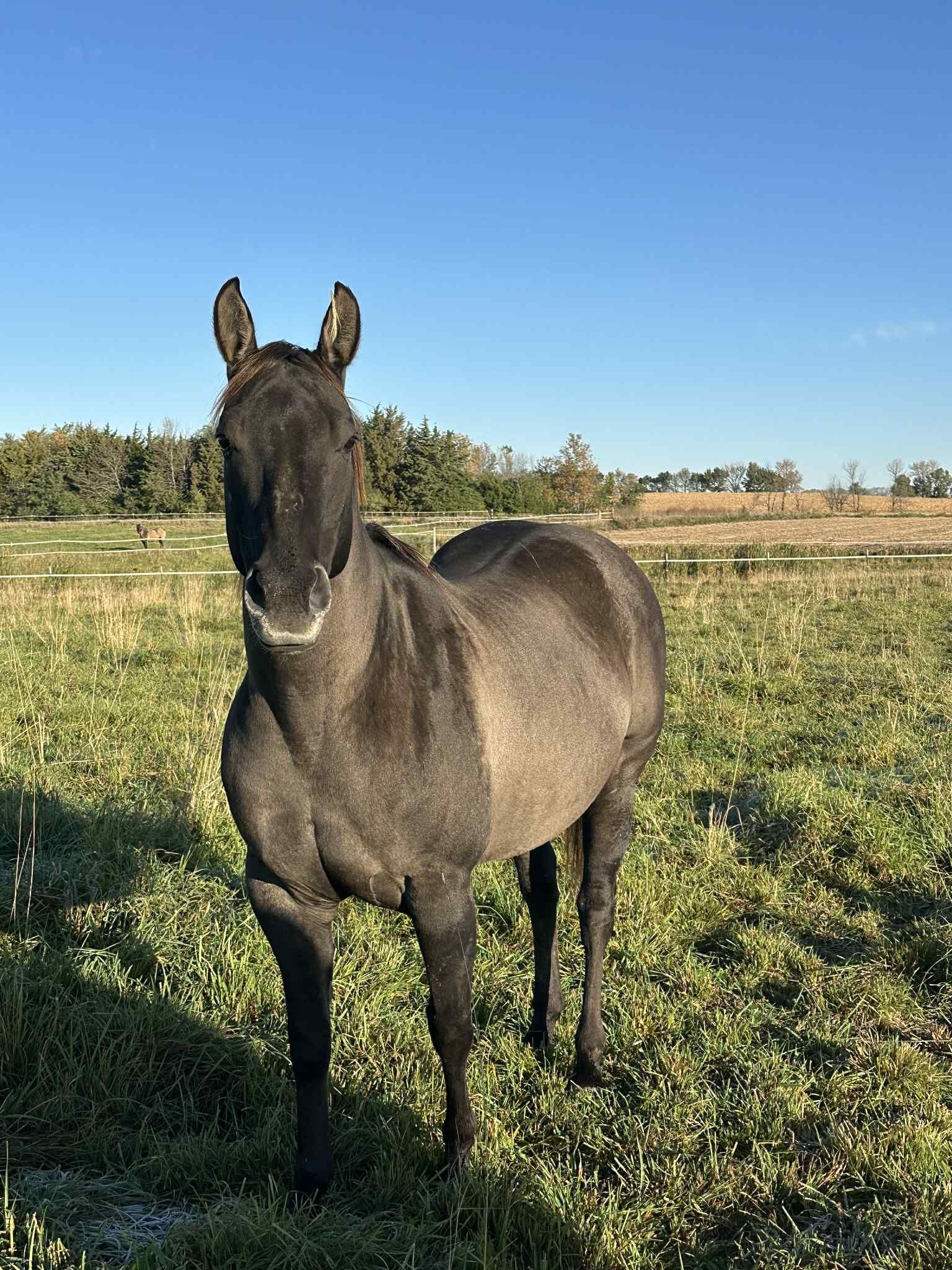 In foal to Xceptionalizm and due the beginning of June. Foal can only be grulla or smoky grulla. Guaranteed HZ dun and HZ Black.