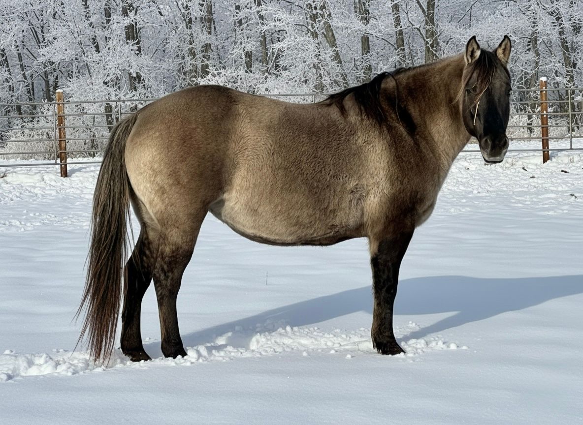 In foal to Xceptionalizm and due mid May. Foal can only be grulla or smoky grullla. Guaranteed HZ dun and, 50% chance of being HZ black as well.